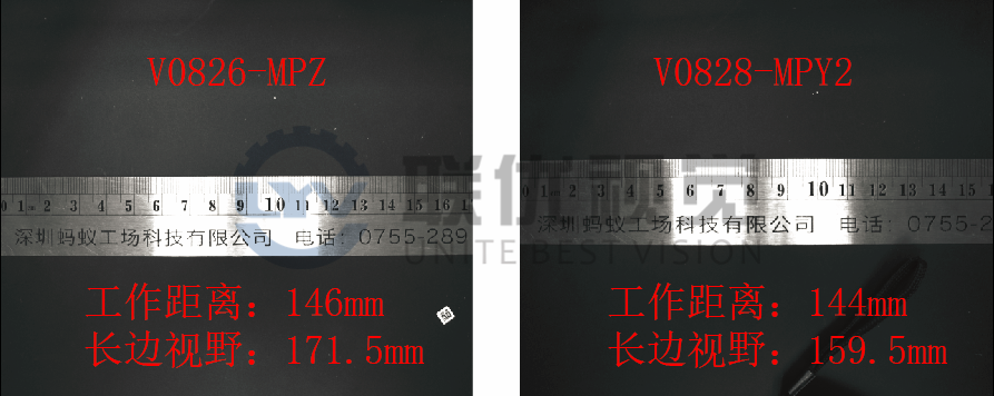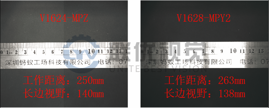 3、V1624-MPZ(16mm焦距、1英寸、2000萬像素)與V1628-MPY2(16mm焦距、1.1英寸、1200萬像素)