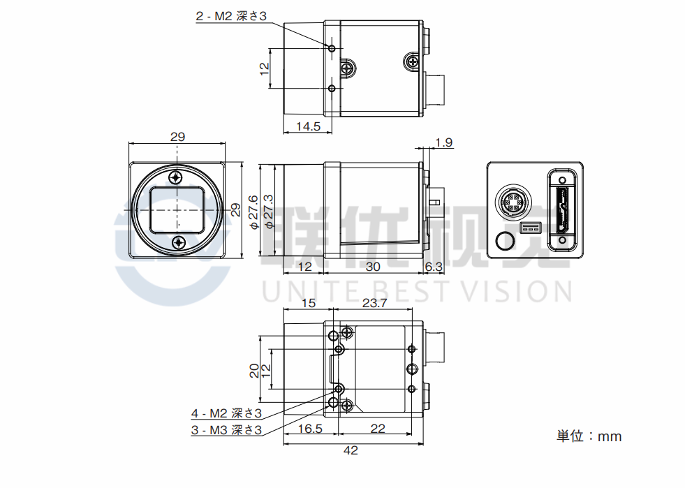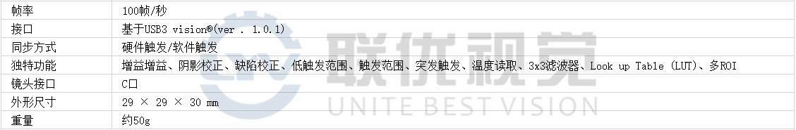 ●XCU-CG160C(彩色)1/2.9英寸USB全局快門,160萬像素,分辨率為1456 (H) x 1088 (V)(有效像素),幀速率超過100fps,支持USB3.0 Vision 1.0.1接口。