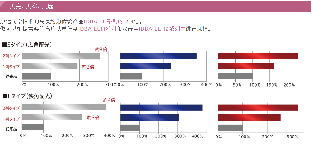 新型條形照明采用獨(dú)特的光學(xué)技術(shù),可達(dá)到原始IDBA-LE系列產(chǎn)品的約3-4倍。