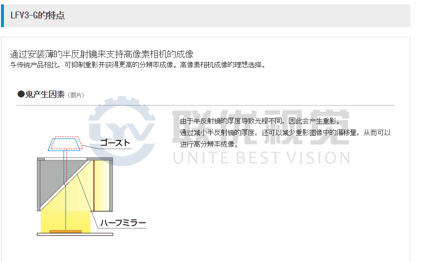 同軸照明通過采用薄型半反射鏡來抑制重影。與傳統(tǒng)產(chǎn)品相比,通過提高輸出和均勻性,可以支持高像素相機(jī)的成像。