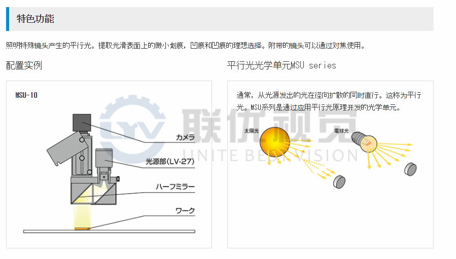 照射由特殊透鏡產(chǎn)生的平行光。有五種型號(hào)可供選擇,具體取決于視野。發(fā)射顏色可以從紅色(RD2),白色(SW),藍(lán)色(BL)和綠色(GR)中選擇。