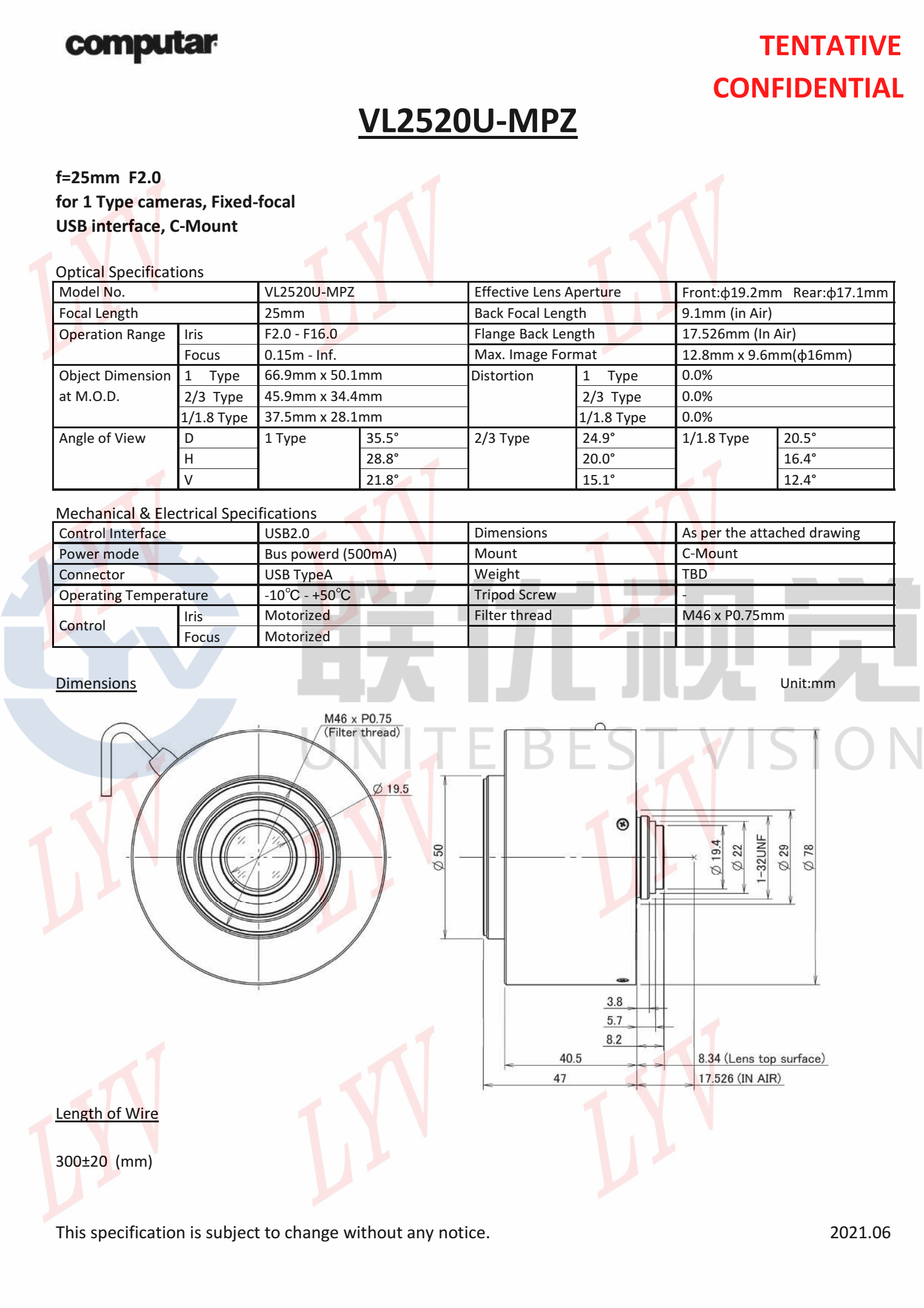 • 全新電動鏡頭,可通過 USB 供電和控制(適用于 I2C 版本)